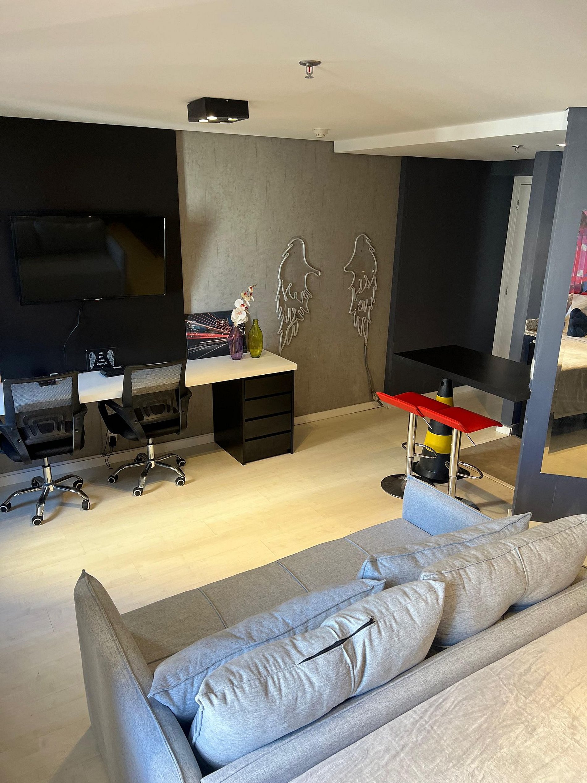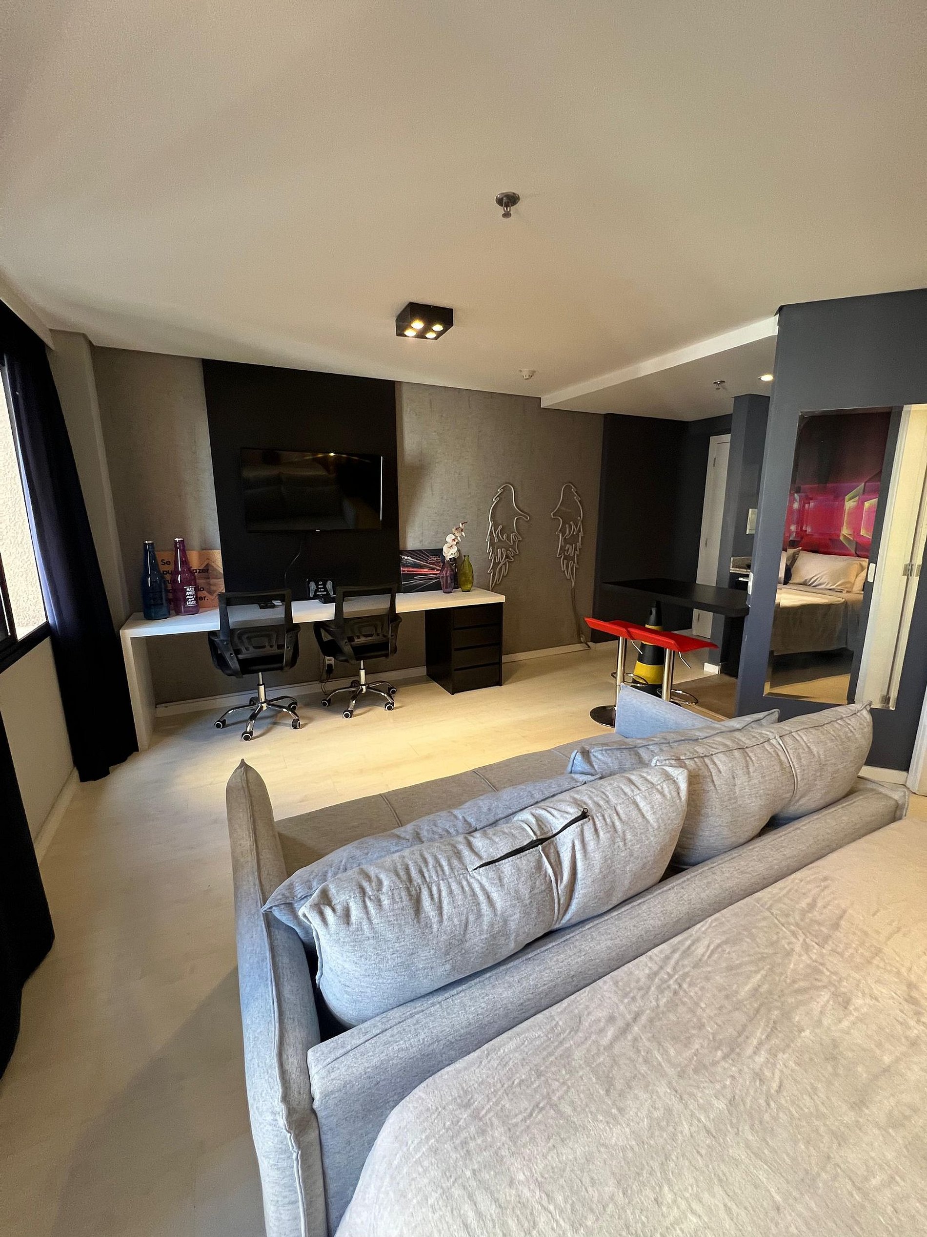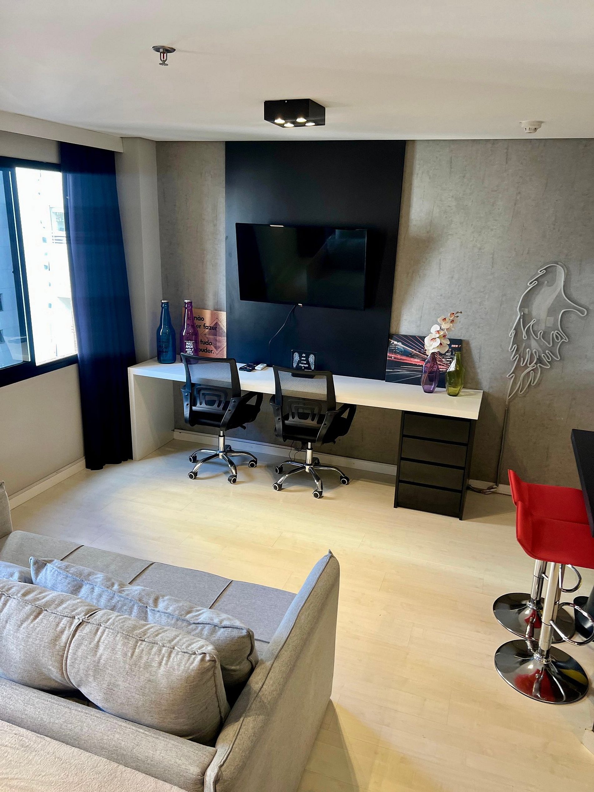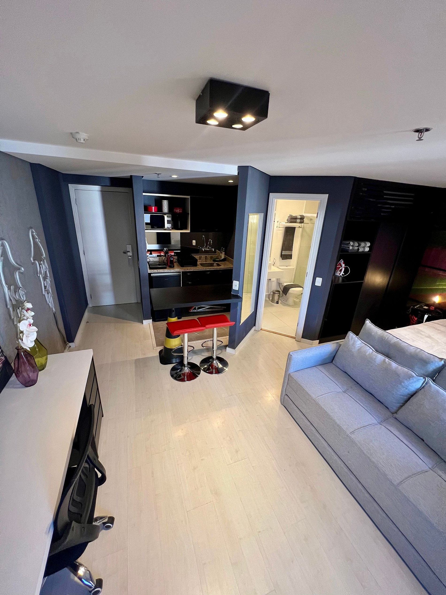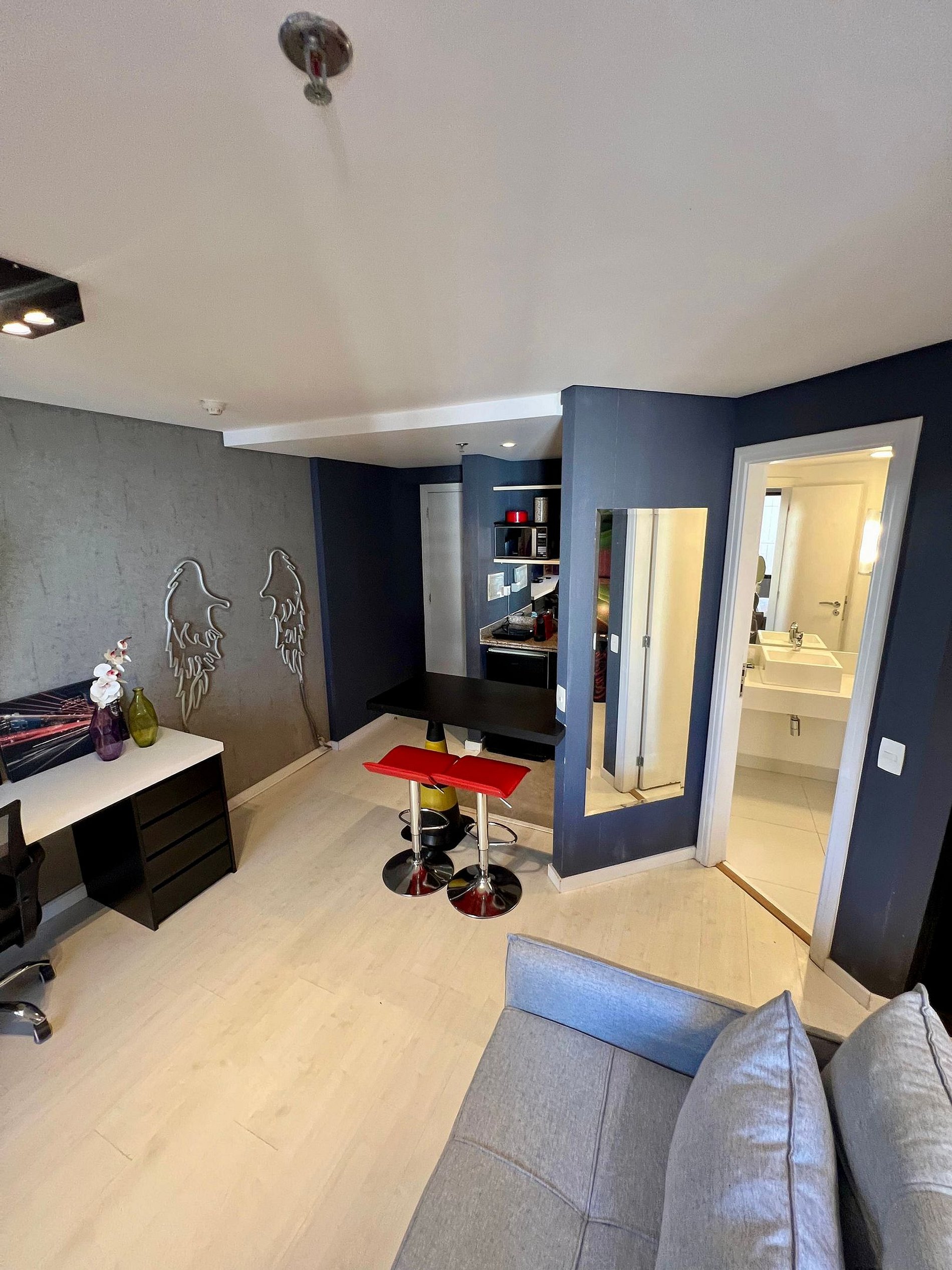 Flat estilo loft, com decoração moderna localizado na Av. Jamaris a poucos passos da Av. Ibirapuera, no coração de Moema. O edifício oferece recepção 24h, restaurante no térreo, piscina, sauna, academia e garagem com manobrista — tudo para a sua comodidade.