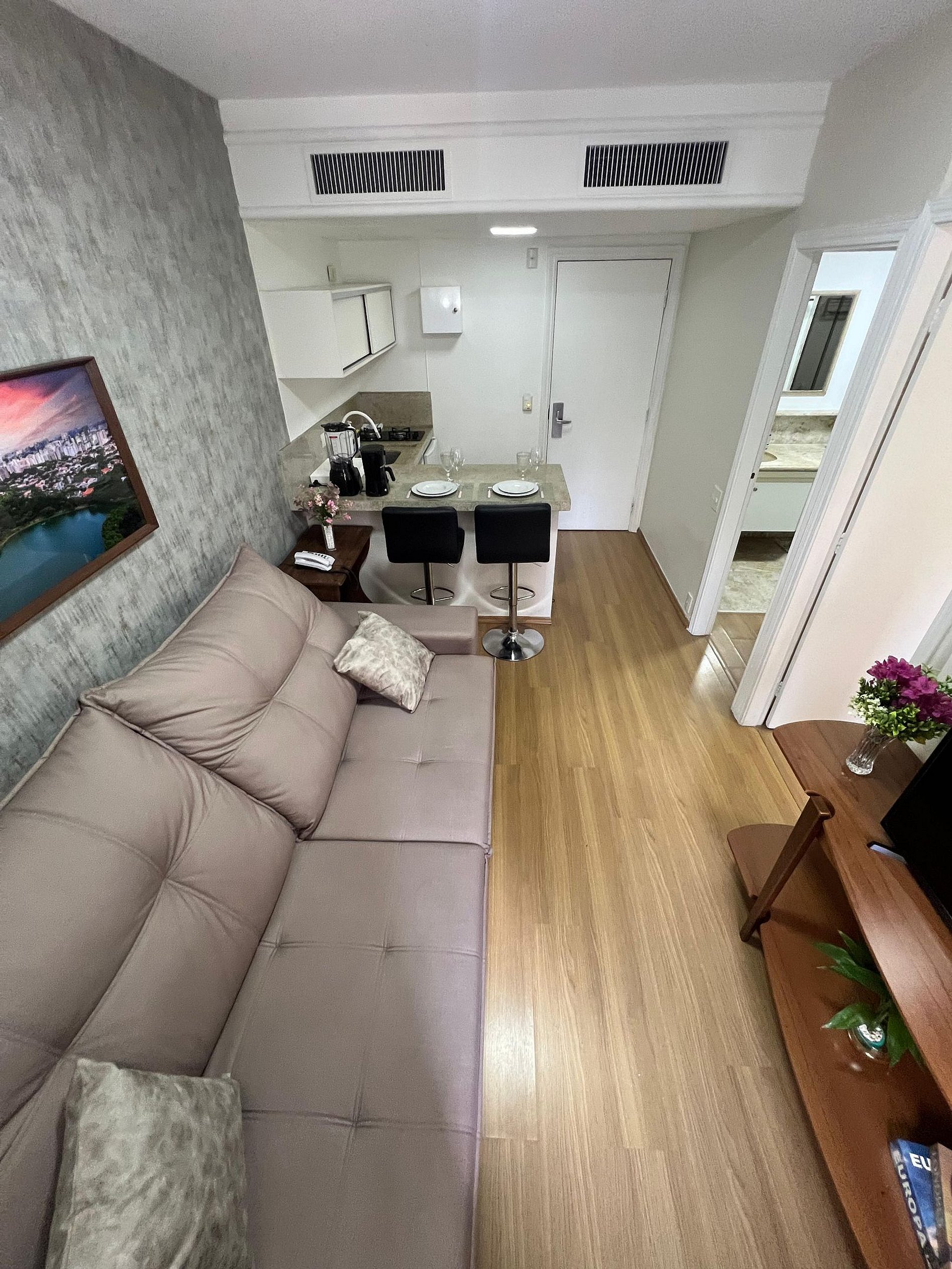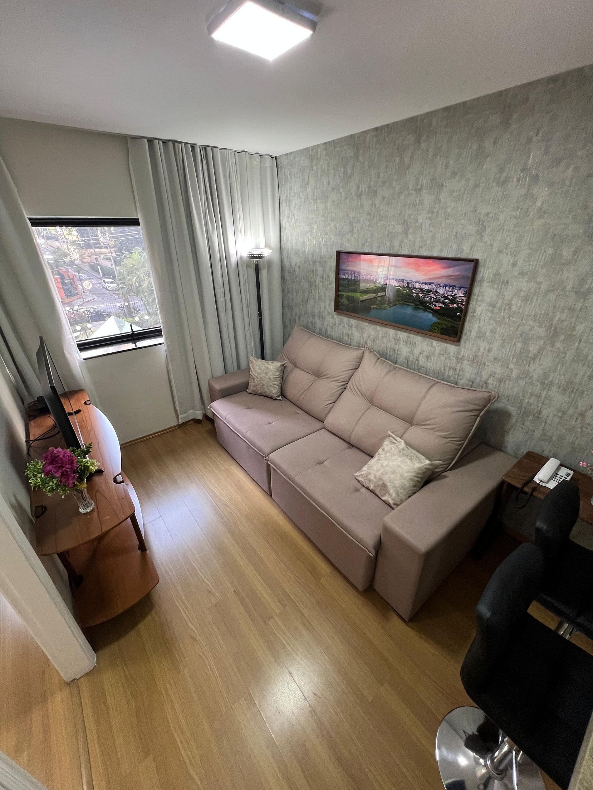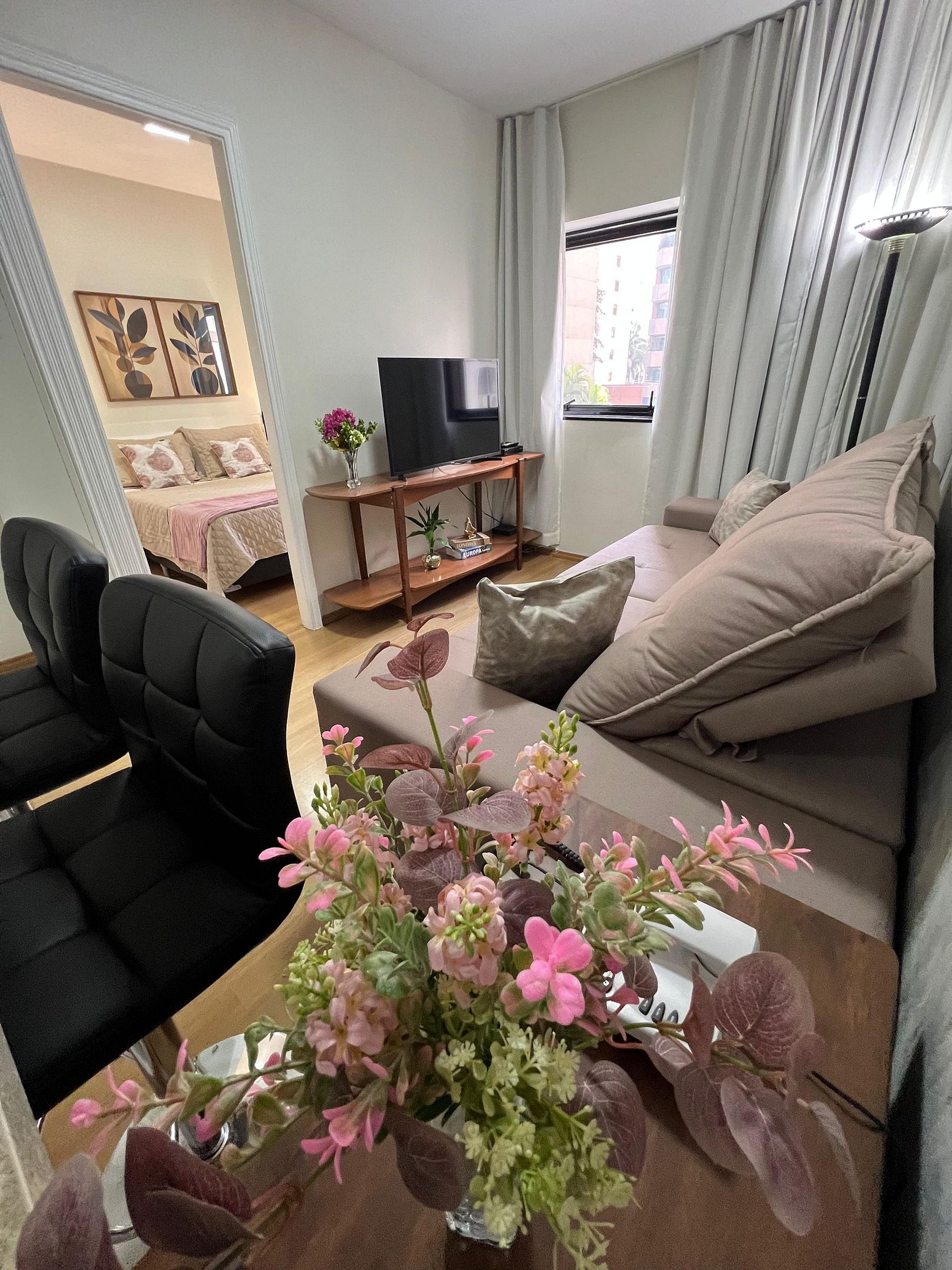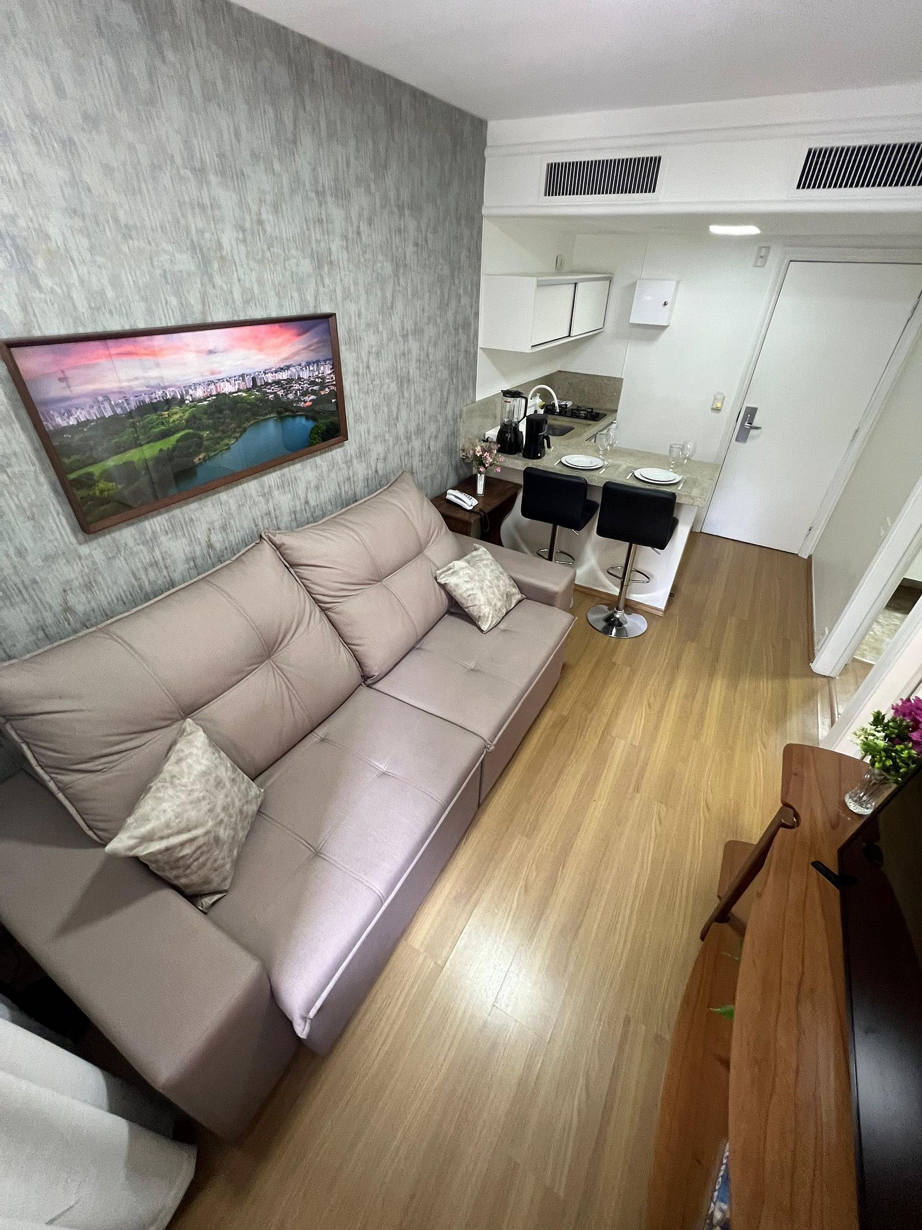Apto. estilo flat quarto e sala com cozinha, muito confortável, localizado na R. Guarará, Jardins. A 200 metros Jardim Pamplona Shopping. Prédio com recepção 24 hrs, piscina, academia, garagem, lavanderia, mini mercado e mais. Localização estratégica. Bares, padarias, restaurantes, supermercados, teatros, shops. e hospitais próximos. Fácil acesso as principais vias. O flat fica a: